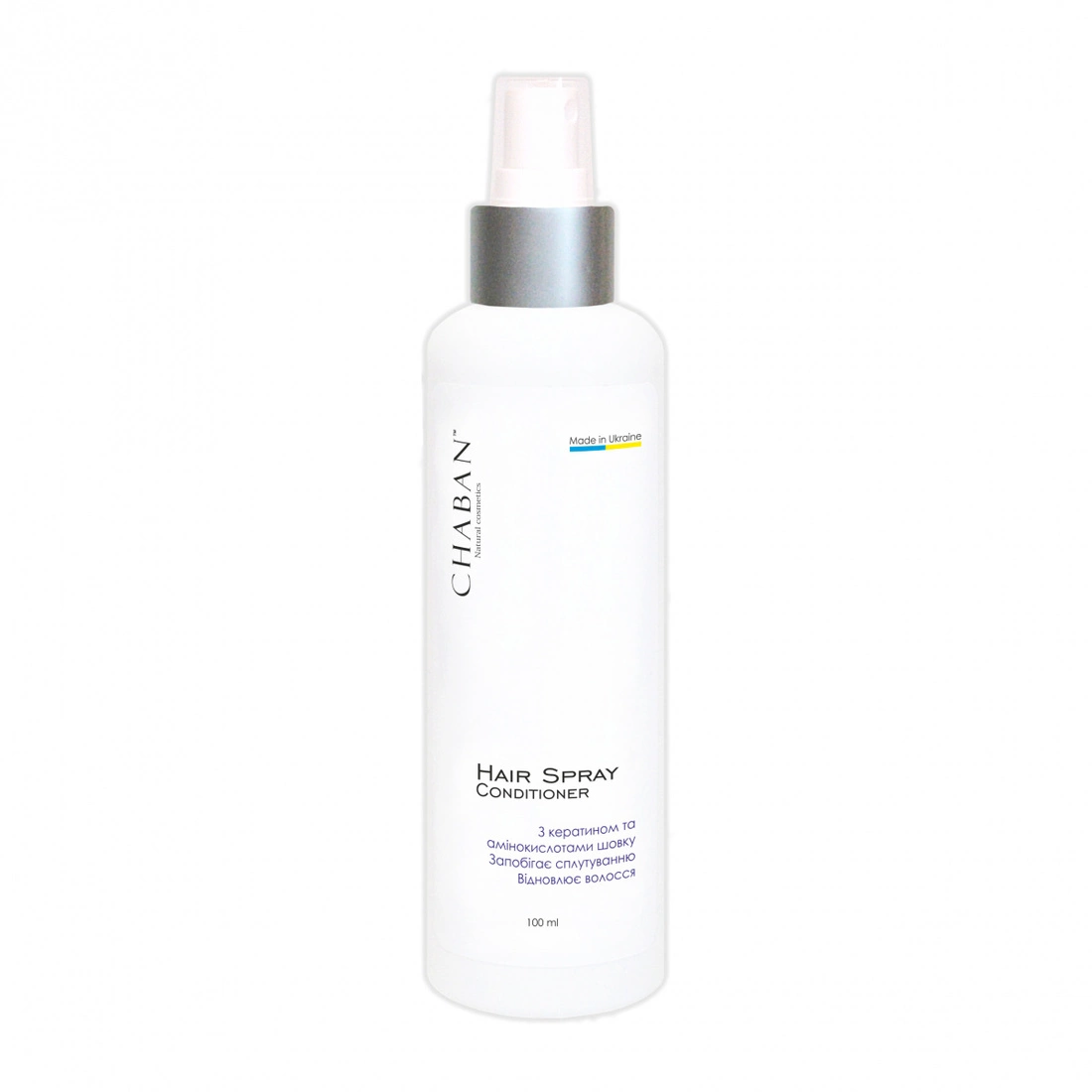 Спрей з кератином та амінокислотами шовку. Запобігає сплутуванню. Відновлює волосся Chaban 100 ml